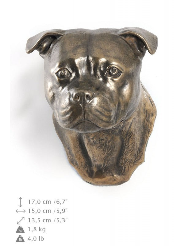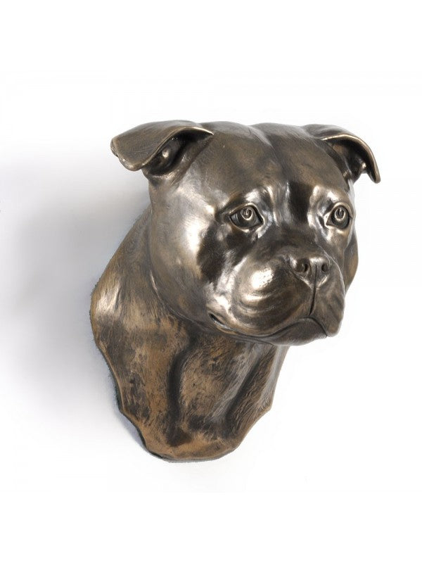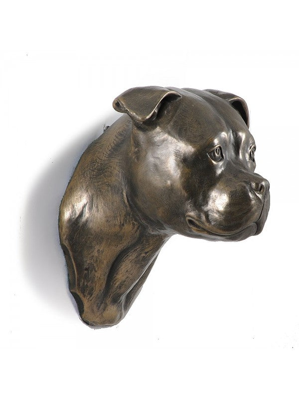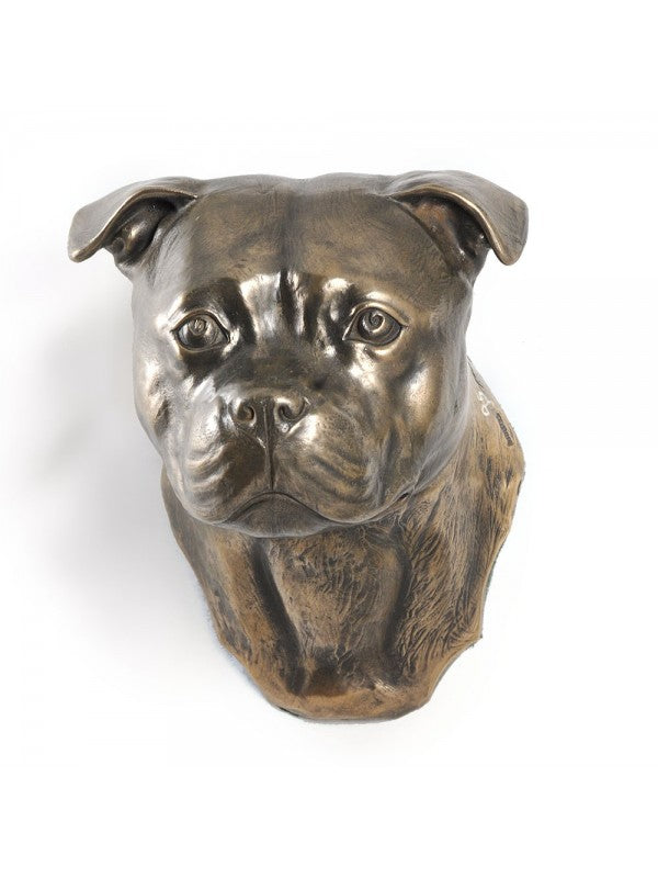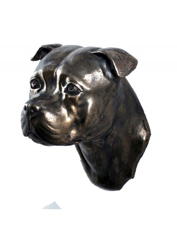 Handgjord Staffordshire bullterrier-figurin i kallstöpt brons med interiör i stark kvartsi begränsad upplaga.