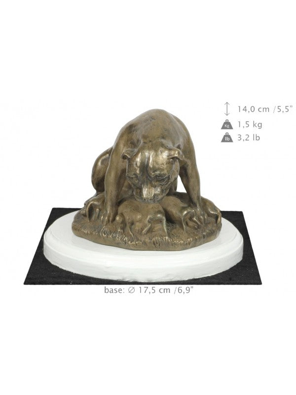 Handgjord Staffordshire bullterrier-statyetti kallstöpt brons med interiör i stark kvarts ståendes på bas i vitt trä i begränsad upplaga.