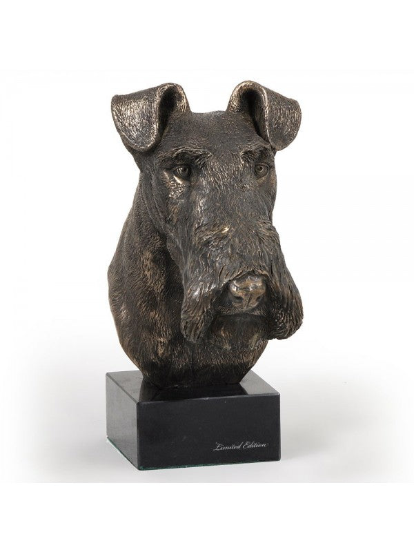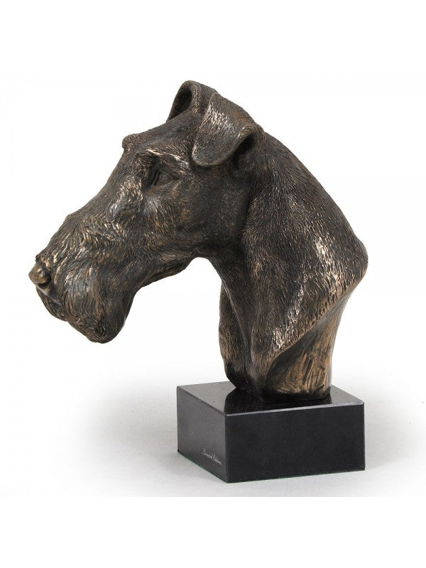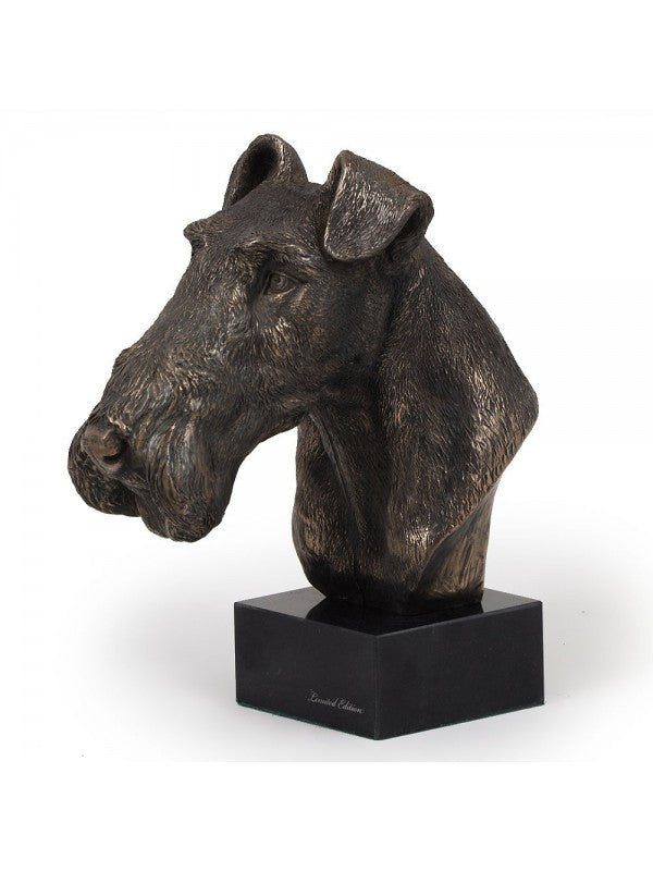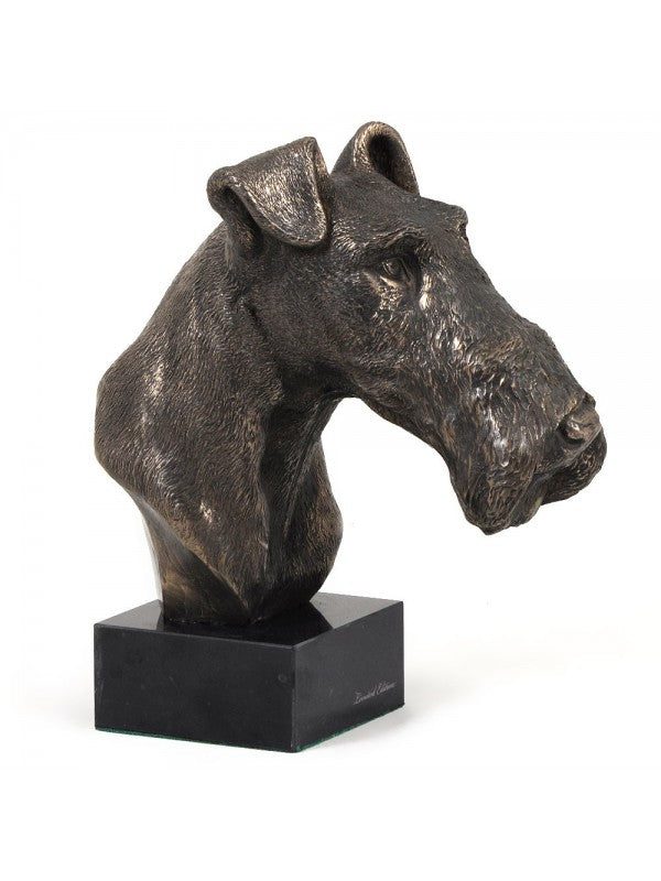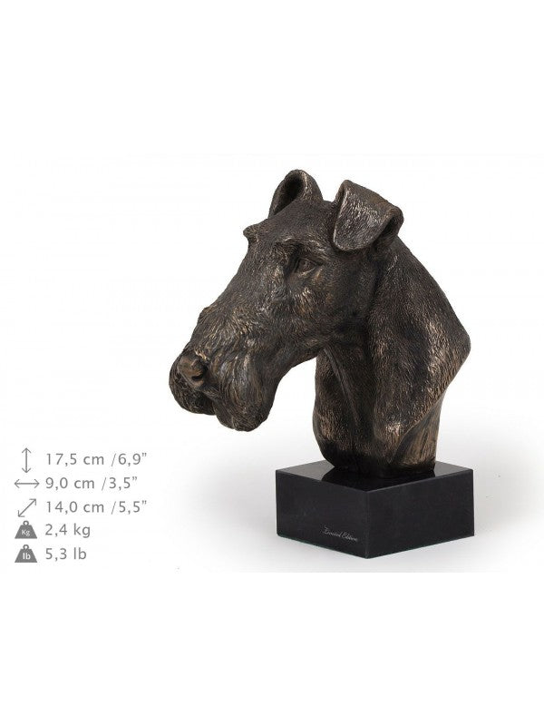 Handgjord Strävhårig foxterrier-figurin i kallstöpt brons med interiör i stark kvarts ståendes på marmor i begränsad upplaga.