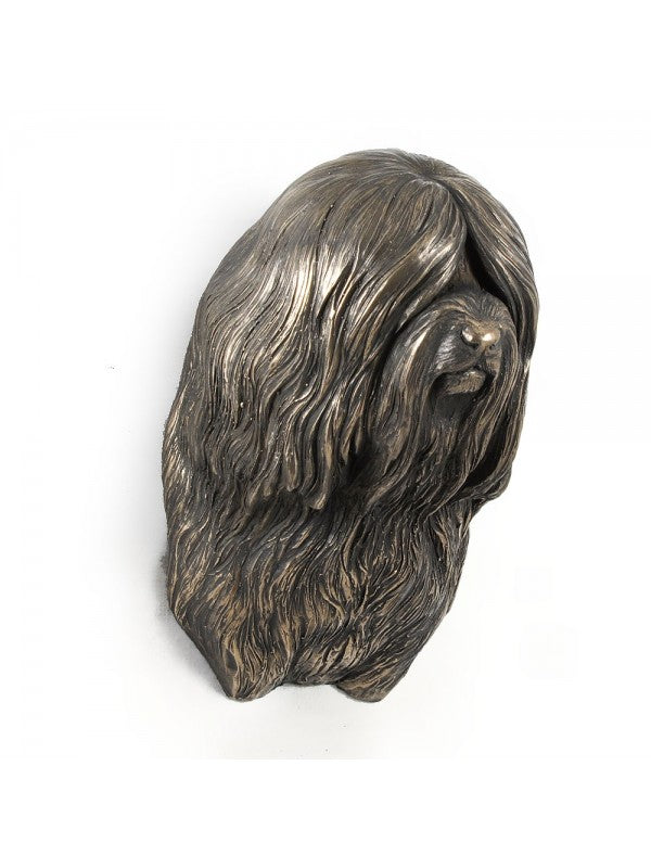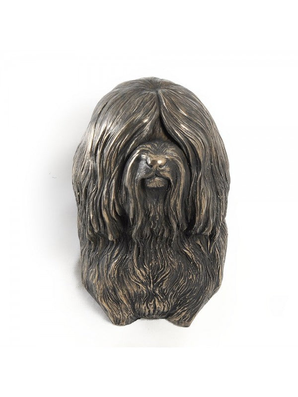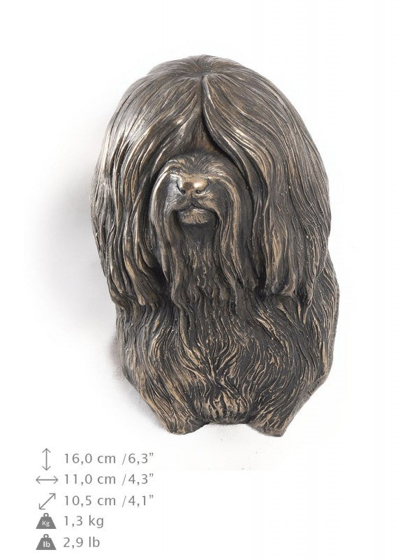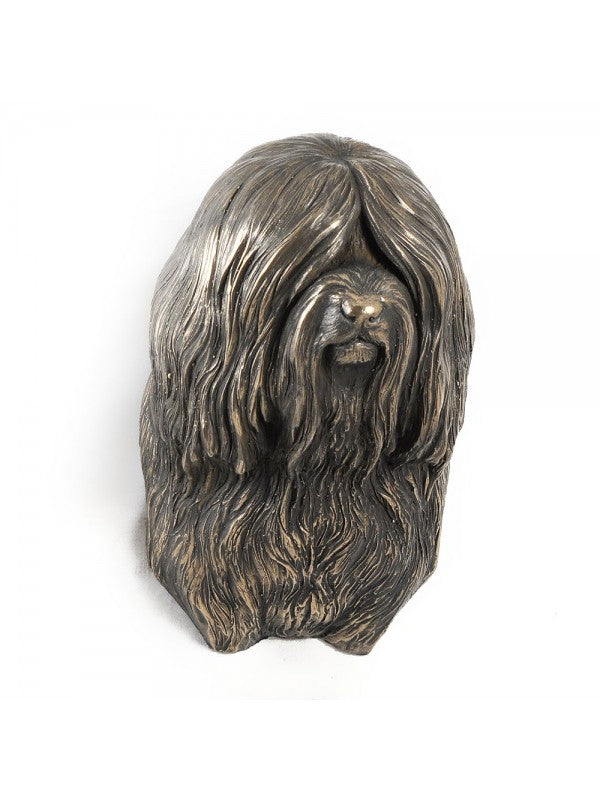 Handgjord Tibetansk terrier-figurin i kallstöpt brons med interiör i stark kvartsi begränsad upplaga.