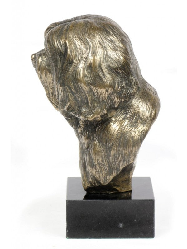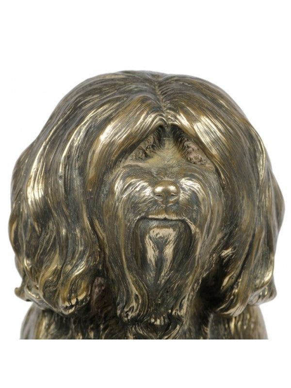 Handgjord Tibetansk terrier-figurin i i kallstöpt brons med interiör i stark kvarts ståendes på marmor i begränsad upplaga.