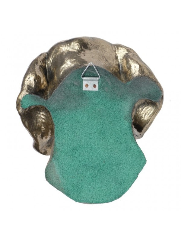Prydnaden är vägghängandes och är noga utformad för att främja hundens skönhet och skapelsen utstrålar kärlek och lojalitet.