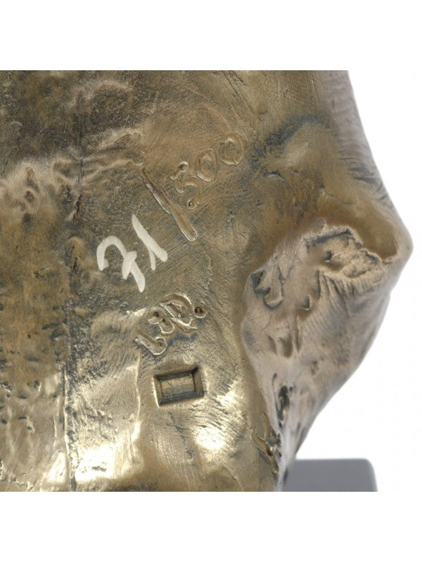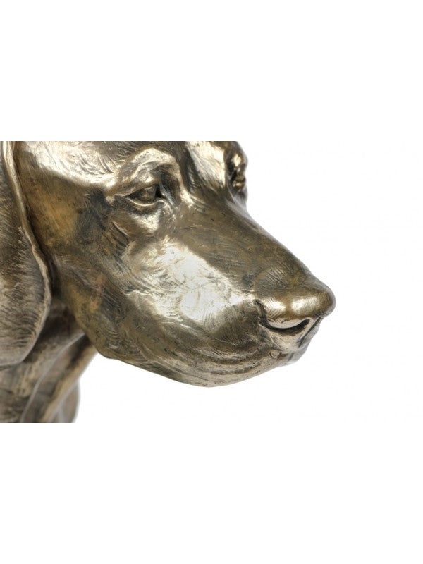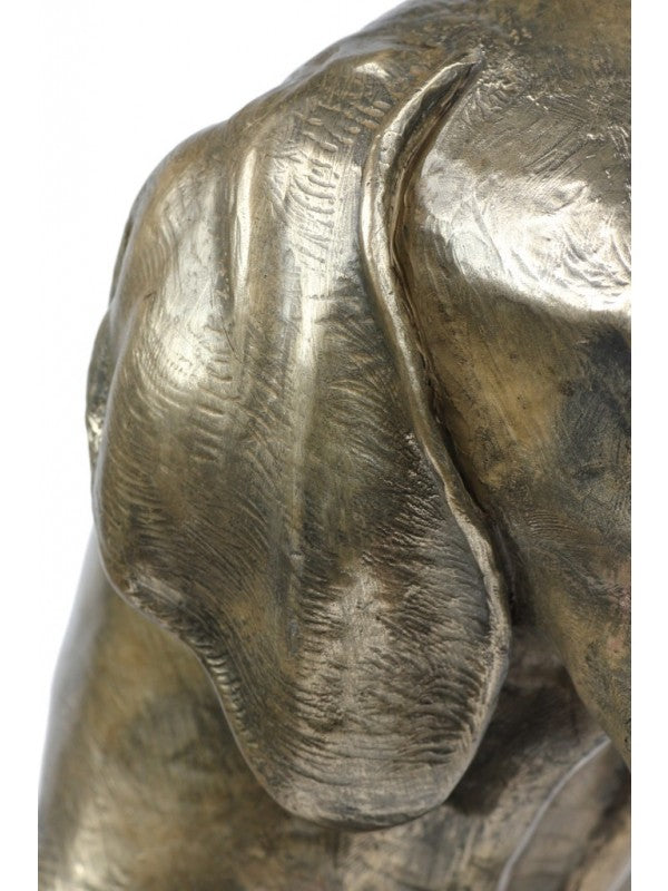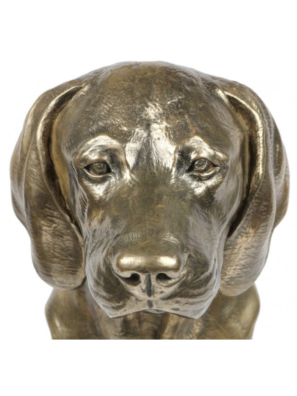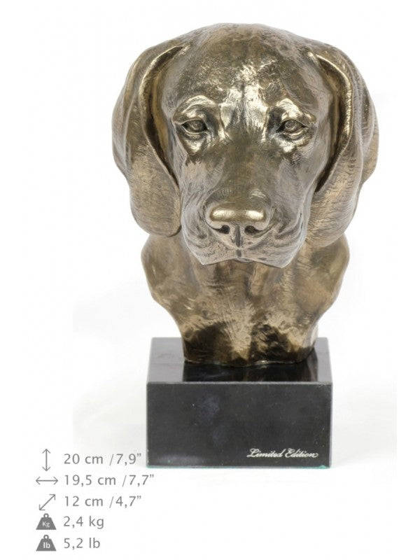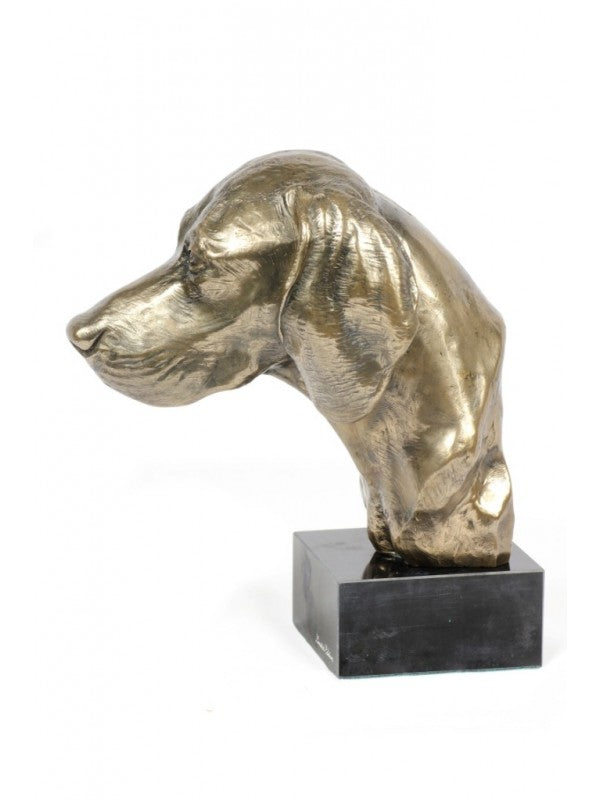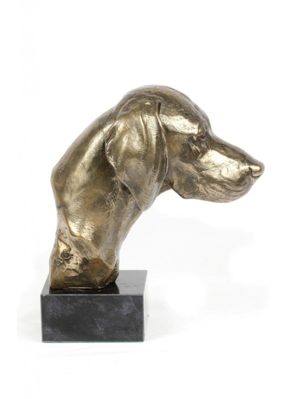 Handgjord Weimaraner-figurin i i kallstöpt brons med interiör i stark kvarts ståendes på marmor i begränsad upplaga.