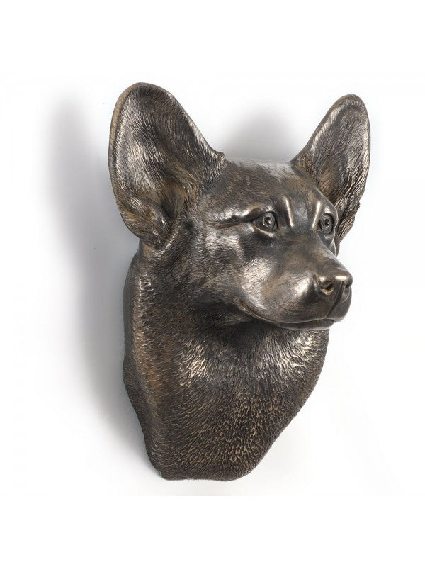 Handgjord Welsh corgi pembroke-figurin i kallstöpt brons med interiör i stark kvartsi begränsad upplaga.