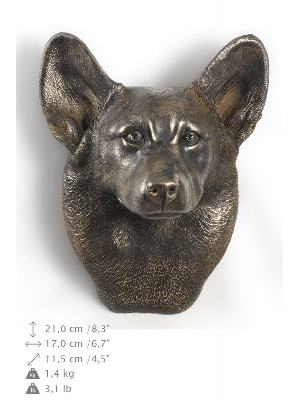 Prydnaden är vägghängandes och är noga utformad för att främja hundens skönhet och skapelsen utstrålar kärlek och lojalitet.