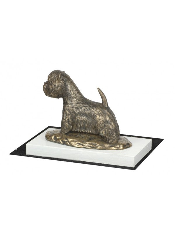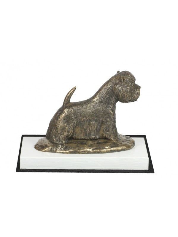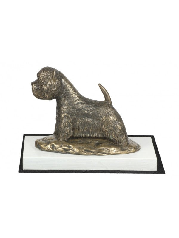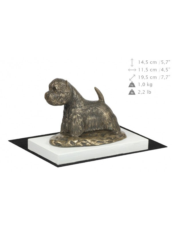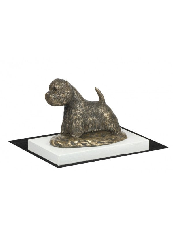 Handgjord West Highland White Terrier-statyetti kallstöpt brons med interiör i stark kvarts ståendes på bas i vitt trä i begränsad upplaga.
